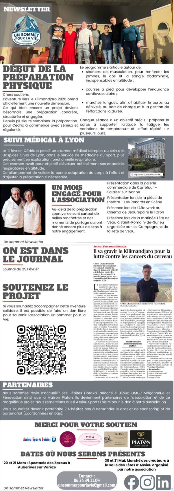 🙏 Nous remercions sincèrement Un Sommet pour la Vie et Cédric Chardaire pour cette confiance et cet engagement solidaire, qui permettront de soutenir concrètement la recherche, les patients et leurs proches. Chaque action compte, et ce soutien est précieux.