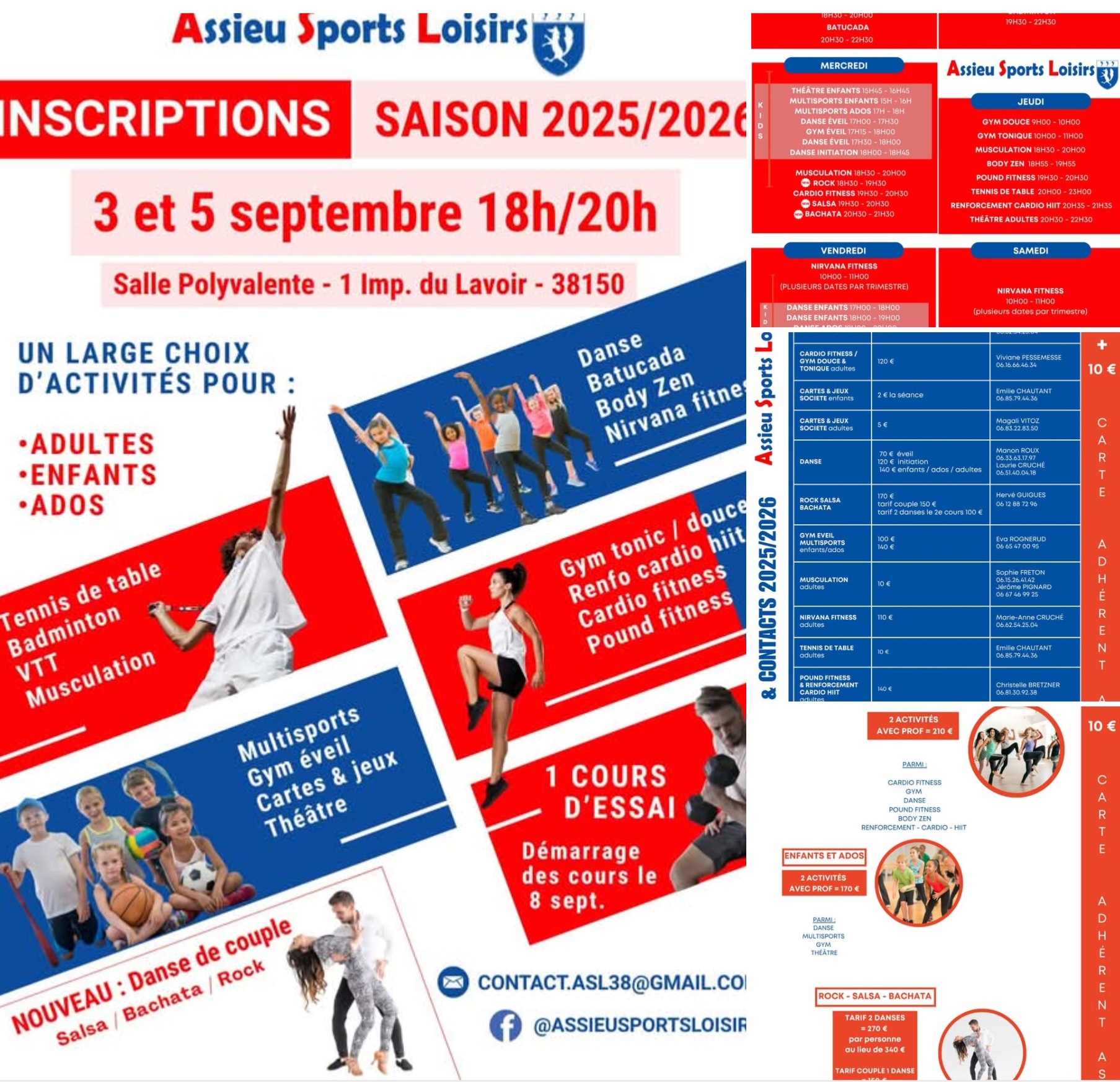Le montant de l'inscription pour la saison 2025/2026 est de 170 € payable à l'ordre de l'ASL (Assieu Sports Loisirs) en 1, 2 ou 3 fois, encaissés en novembre, janvier et avril + 10€ de frais d'adhésion.
